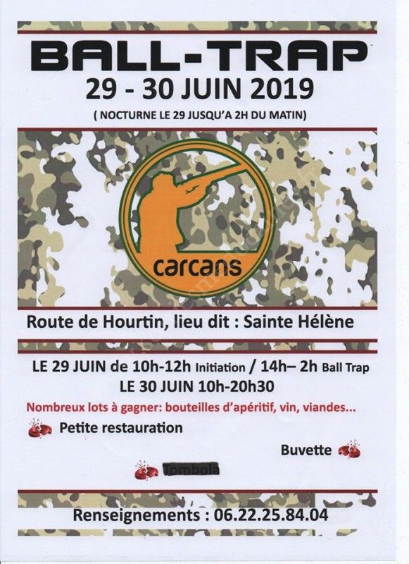- 14h00 à 2h00 : Ball Trap (nocturne)