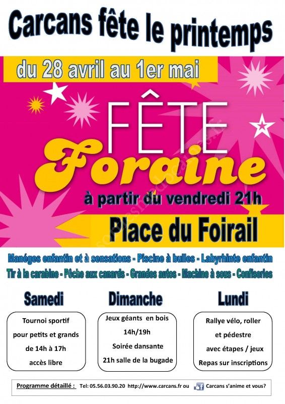 Dimanche : jeux géants en bois de la côte d’argent de 14h00 à 19h00 puis soirée dansante organisée par le comité des fêtes de carcans (toutes les informations sur la soirée en cliquant ici)