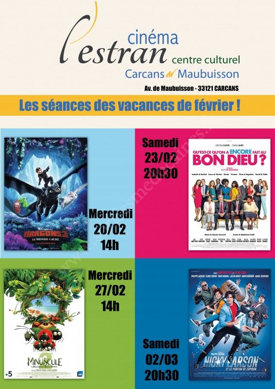 Pendant les vacances de février, 4 nouvelles séances de cinéma pour toute la famille au cinéma de Carcans !