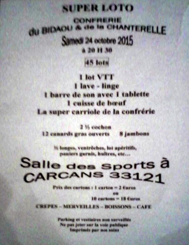 Loto organisé par la Confrérie du Bidaou & de la Chanterelle.