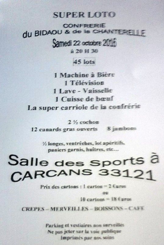 Grand loto de la confrérie de la chanterelle et du Bidaou.