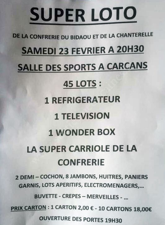 Loto de la Confrérie du Bidaou et de la Chanterelle.