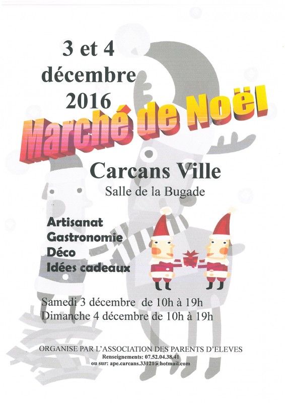 L'APE organise leur marché de noël avec les artisans et la gastronomie ainsi que de nombreuses animations (balade à poney, pêche à la ligne, maquillage, ......)