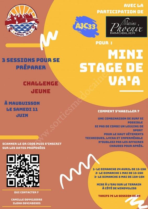 Le club médoc va’a organise en collaboration avec l’AJC 33 3 sessions d’initiations de pirogues pour les enfants (à partir de 7-8ans) :