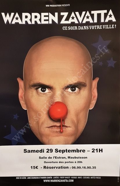 One man Show avec Warren ZAVATTA, petit fils de l'illustre Clown Achille Zavatta. Son spectacle est à la fois un hommage et une caricature du monde du cirque. 1 h 15 de spectacle mélant humour, tendresse, et quelques surprises. Spectacle interactif au cours duquel le public sera invité à participer.