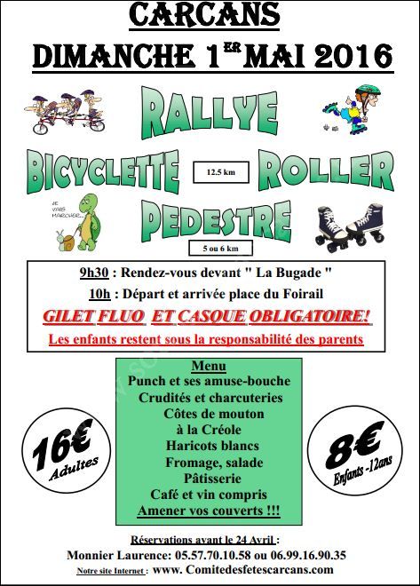 Rallye Bicyclette / Roller sur 12,5 km et pédestre sur 5 ou 6 km (le choix se fera au départ). 6 étapes avec jeux, départ, arrivée, remise des lots à côté du SkatePark.