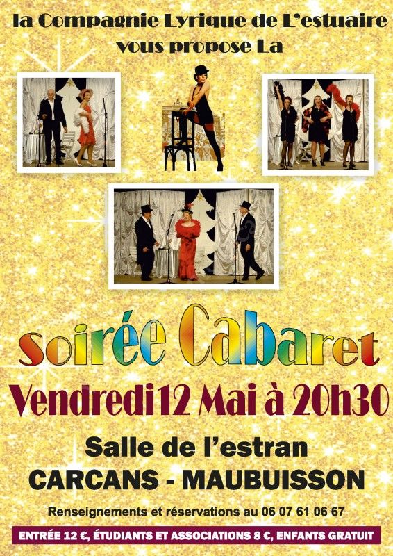 La compagnie lyrique de l'estuaire propose un spectacle cabaret costumé avec des chansons de comédies musicales américaines, des chansons françaises, et quelques sketches comiques entre les chansons.