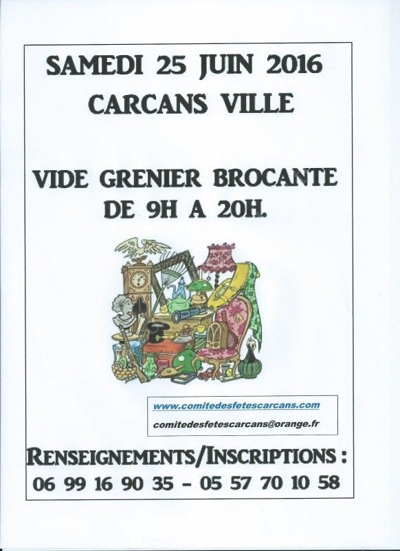 - De 9h00 à 21h00 : vide grenier brocante (organisé par le Comité des Fêtes), Place du Foirail - ouvert aux habitants, particuliers et professionnels - 2,65 € le ml.