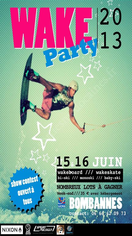 La Wake Party Bombannes 2013 est un contest de Wakeboard, amical et ouvert à tous.