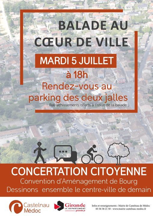 Dans le cadre de la concertation citoyenne menée à l'occasion de la Convention d'Aménagement de Bourg, la mairie de Castelnau vous invite à participer à une balade au coeur de Castelnau.