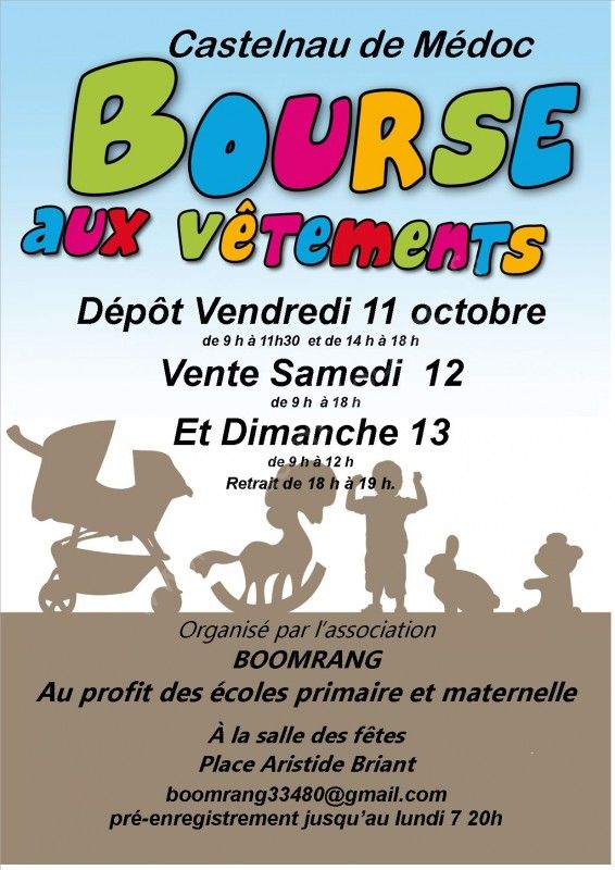 La bourse aux vêtements d'hiver de l'association Boomrang au profit des écoles primaire et maternelle se tiendra du vendredi 11 octobre au dimanche 13.
