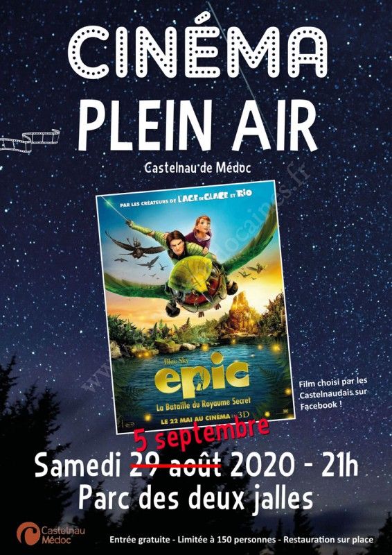 Pour terminer les vacances d’été en beauté, la Municipalité organise une séance de cinéma en plein air gratuit dans le parc des deux Jalles.