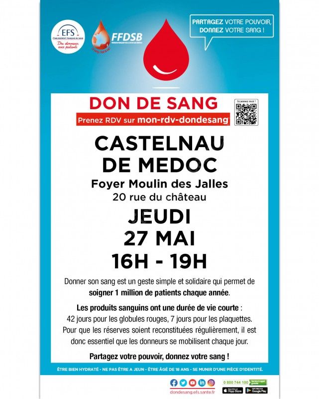 Venez donner votre sang à Castelnau le 27 mai 2021, vous pourrez ainsi sauver des vies !!!