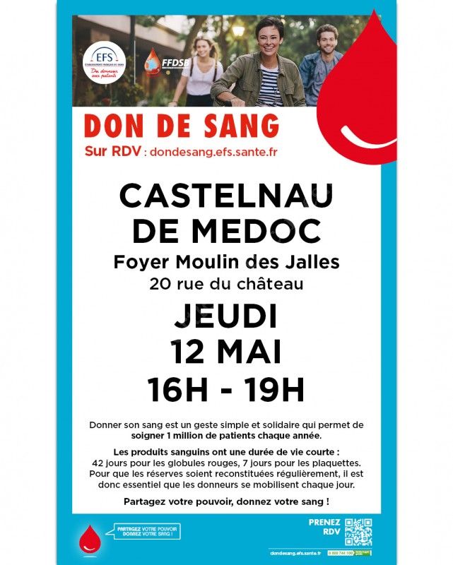 Collecte de sang le jeudi 12 mai 2022 à Castelnau.