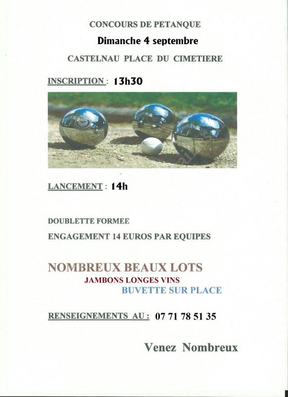 CONCOURS DE PETANQUE DIMANCHE 4 SEPTEMBRE 2016.
