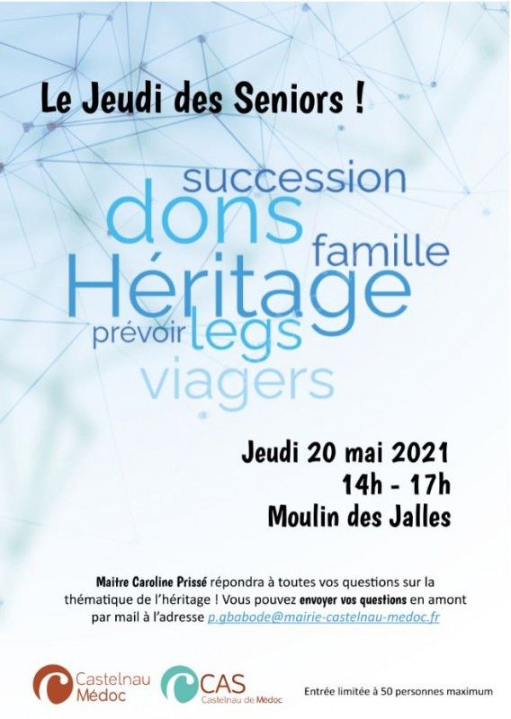 Le CCAS et la Commune de Castelnau organisent une conférence gratuite du "Jeudi des Seniors" sur le thème de l'héritage, dons, legs, viagers…