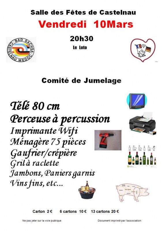 Le Comité de Jumelage organise un loto ce vendredi 10 mars 2017.