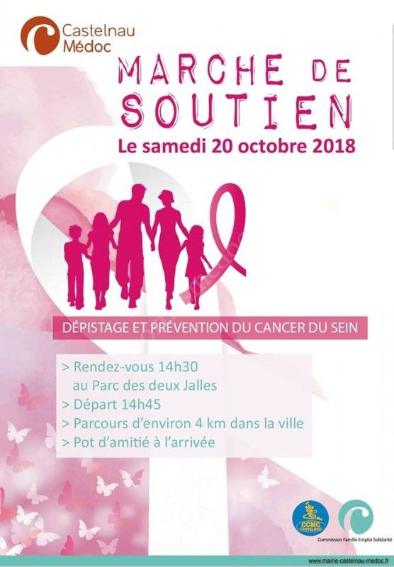 Dans le cadre d’Octobre Rose, mois de la lutte contre le cancer du sein, la commune de Castelnau de Médoc et l’association des Cylco Marcheurs organisent une « Marche Rose » du soutien. Cette marche aura lieu le samedi 20 octobre. Le rendez-vous est fixé à 14h30 au Parc des deux Jalles pour un départ à 14h45.