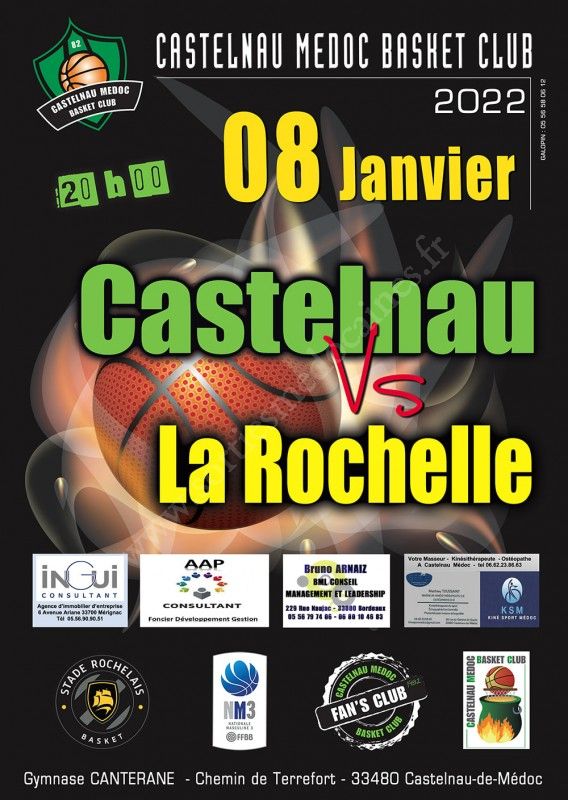 Venez soutenir le Castelnau Medoc Basket Ball Club qui affronte l'équipe de La Rochelle