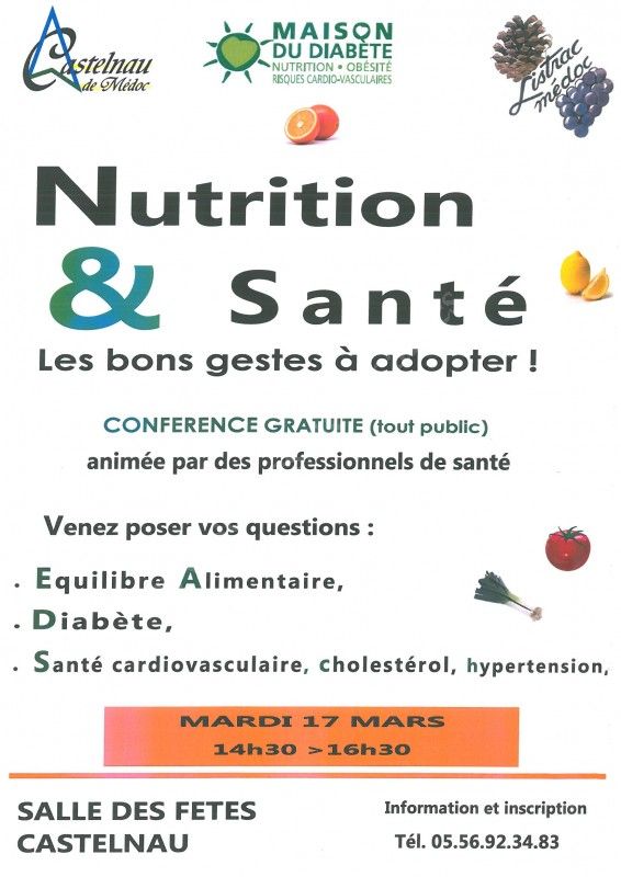 Nutrition & Santé, Les Bons Gestes à Adopter : conférence tout public, animée par des professionnels de la santé.