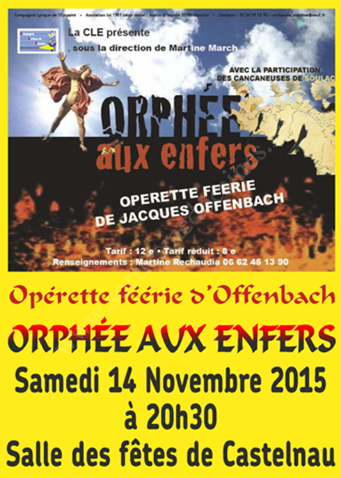 La CLE, sous la direction de Martine March, avec la participation des cancaneuses de Soulac présentent l'opérette féérie de Jacques Offenbach : "Orphée aux Enfers".