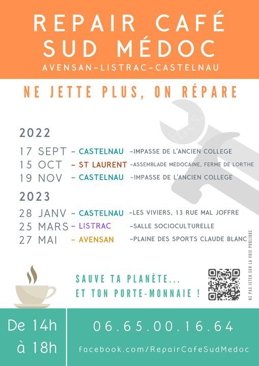 Mise à jour du 16/09/22 : Le Repair Café prévu ce we est annulé à cause du feu qui brule sur Sainte Helene.