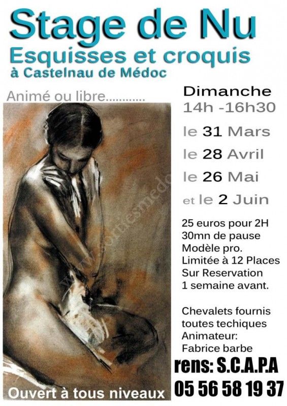 La Structure Castelnaudaise pour les Arts (SCAPA) vous propose de participer à un stage de nu, esquisses et croquis (modèle pro).
