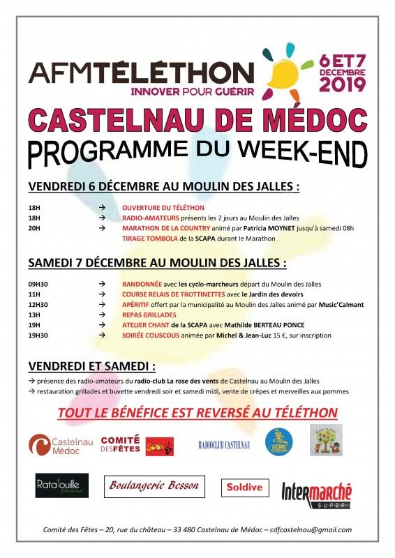 Programme du week-end du Téléthon 2019 à Castelnau :