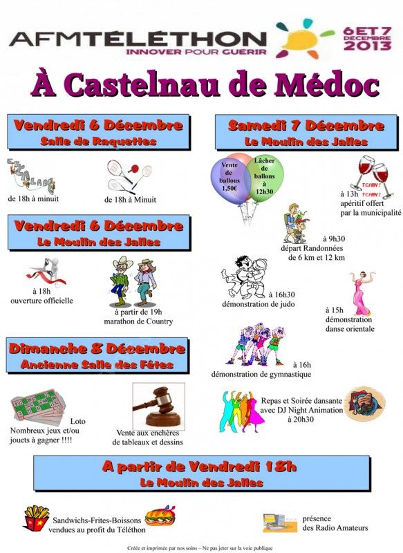 - Sandwiches - Frites - Boissons vendus au profit du Téléthon