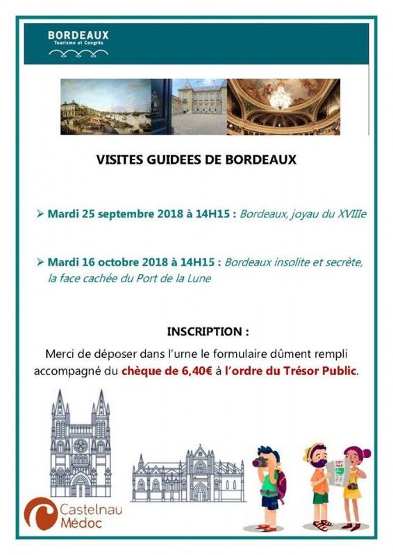 La commune de Castelnau de Médoc, en partenariat avec l’Office de Tourisme de Bordeaux, propose de participer à deux visites guidées à la découverte du patrimoine de Bordeaux à l’automne 2018.
