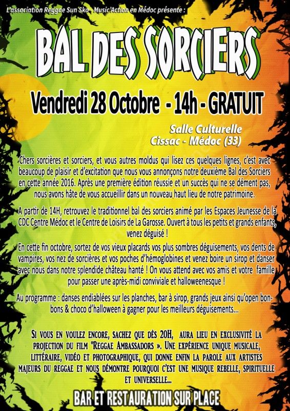 Bal des Sorciers & Projection du film "Reggae Ambassadors" présenté par l'association Reggae Sun Ska - Music'Action en Médoc.