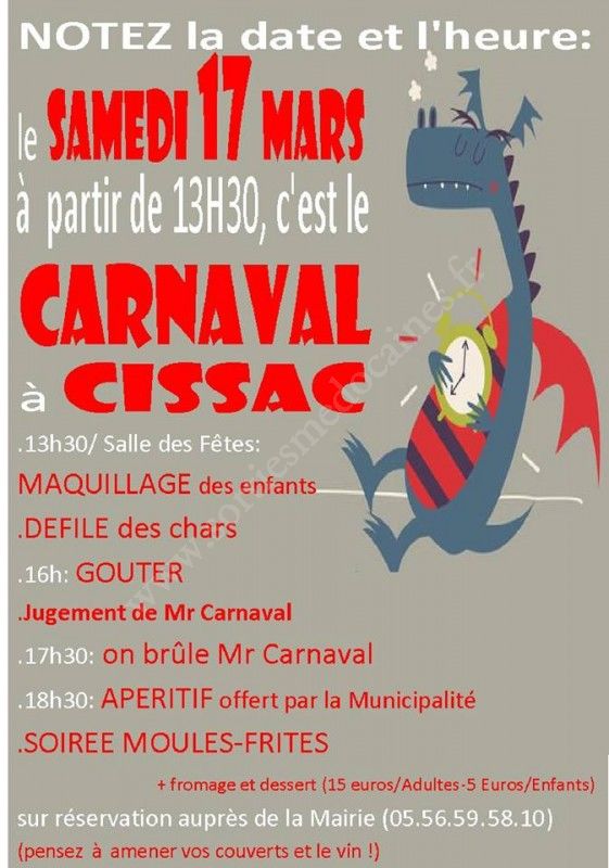 Soirée moules frites : sur réservation à la mairie ou par téléphone au 05.56.59.58.10