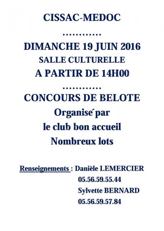 - Tél. : Danièle Lemercier : 05.56.59.55.44 ou Sylvette Bernard : 05.56.59.57.84