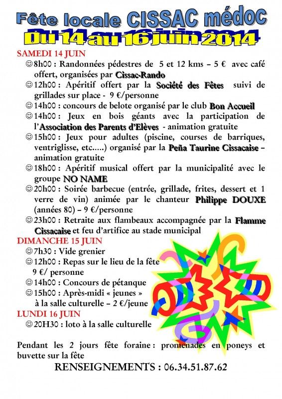 - 8H00 : Randonnée pédestre 12kms ou 5kms - 5€ café offert - Organisé par Cissac-rando, cadeau à chaque participant