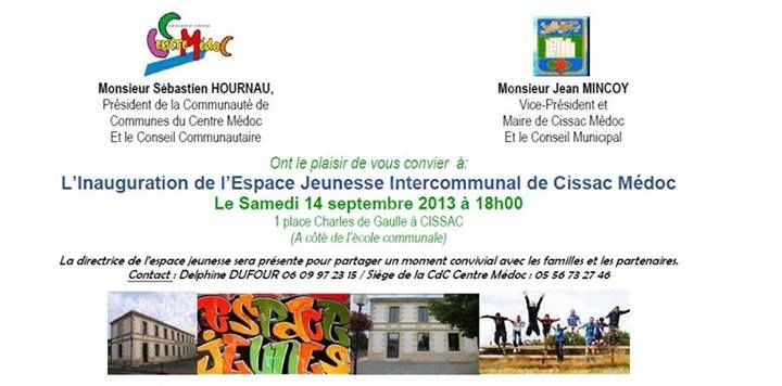 La CdC Centre Médoc en partenariat avec la commune de Cissac vous invite à partager un moment sympathique autour de l'inauguration de l'espace jeunesse intercommunal de CISSAC / VERTHEUIL / ST-ESTEPHE.