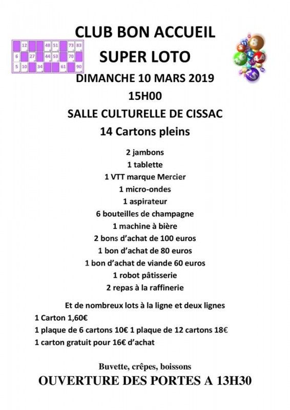 Loto organisé par le Club Bon Accueil