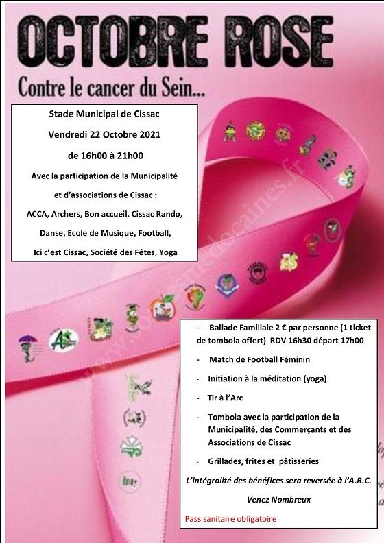 La municipalité et les associations de Cissac vous invitent aux manifestations organisées dans le cadre d'Octobre Rose.