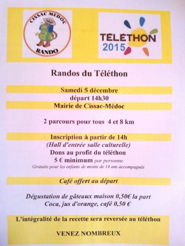 Randos du Téléthon proposées par Randos Cissac-Médoc.