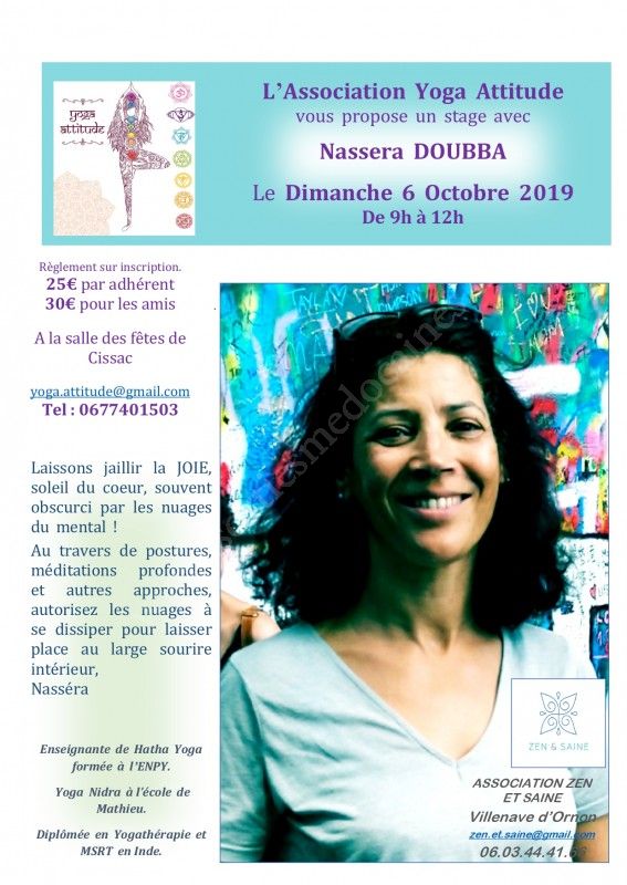 Yoga attitude a le plaisir de vous proposer le premier stage de la saison et il sera sur le thème de la joie et animé par Nassera Doubba