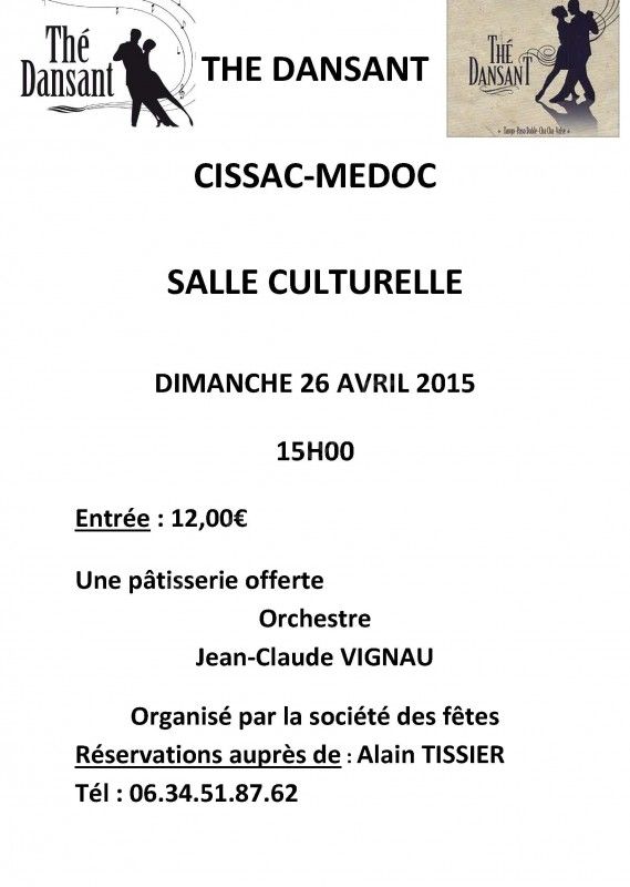 Thé dansant organisé par la société des fêtes et animé par l'Orchestre Jean-Claude VIGNAU.