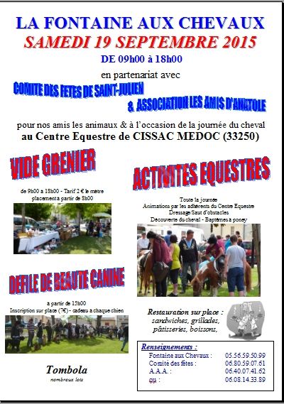 - Lieu : CENTRE EQUESTRE LA FONTAINE AUX CHEVAUX