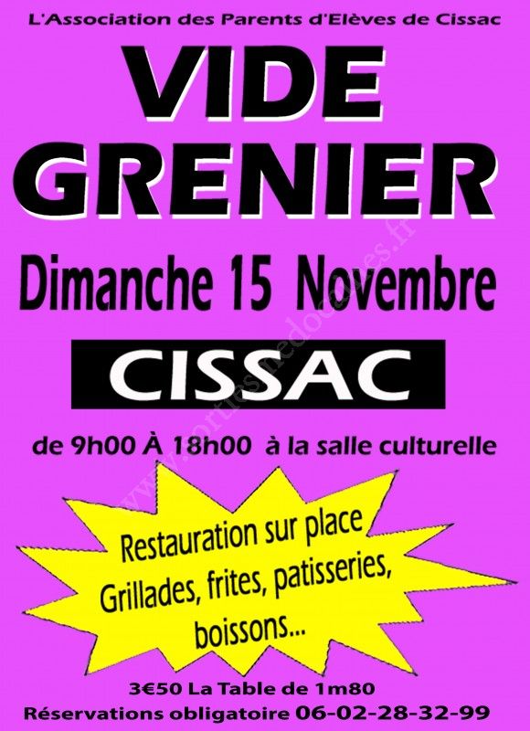 Vide-grenier organisé par l'Association des Parents d'Elèves de l'Ecole de Cissac.