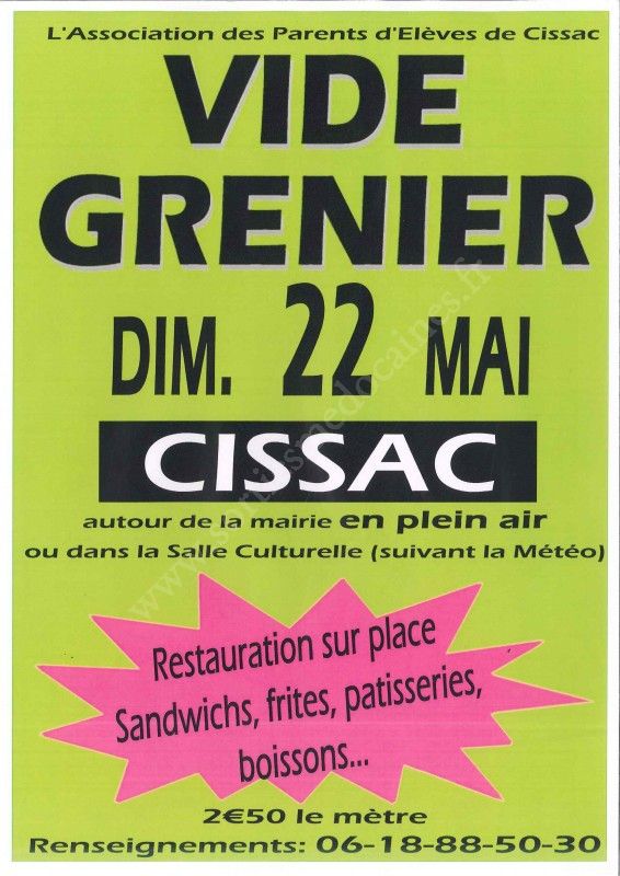 Vide-grenier organisé par l'Association des Parents d'Elèves de Cissac.