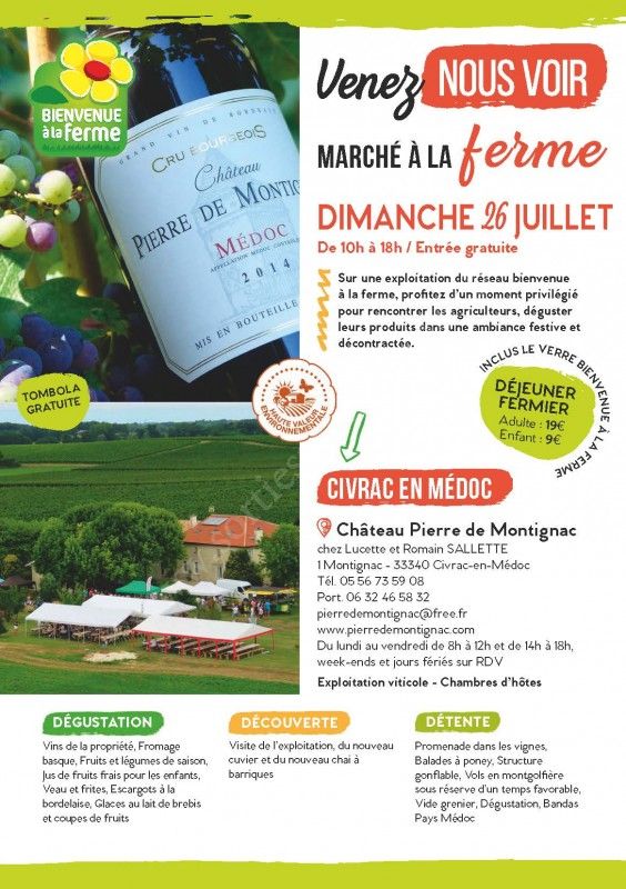 DÉTENTE : Promenade dans les vignes, Balades à poney, Structure gonflable, Vols en montgolfière sous réserve d’un temps favorable, Vide grenier, Dégustation, Bandas Pays Médoc