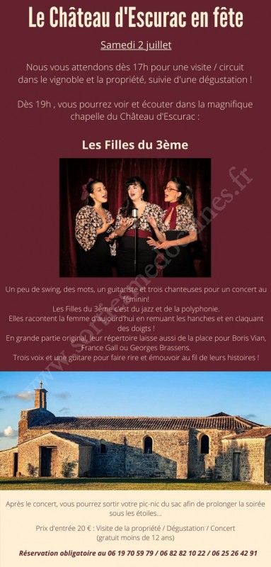 Dès 19h00 vous pourrez voir et écouter, dans la magnifique chapelle du Château d'Escurac, Les Filles du 3ème.