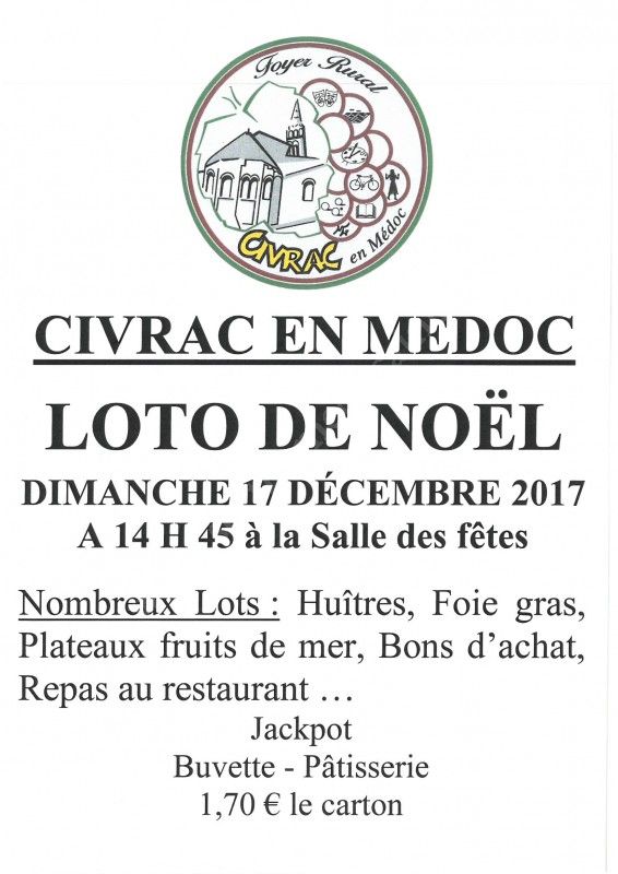 Loto de noël à la salle des fêtes de civrac en médoc.