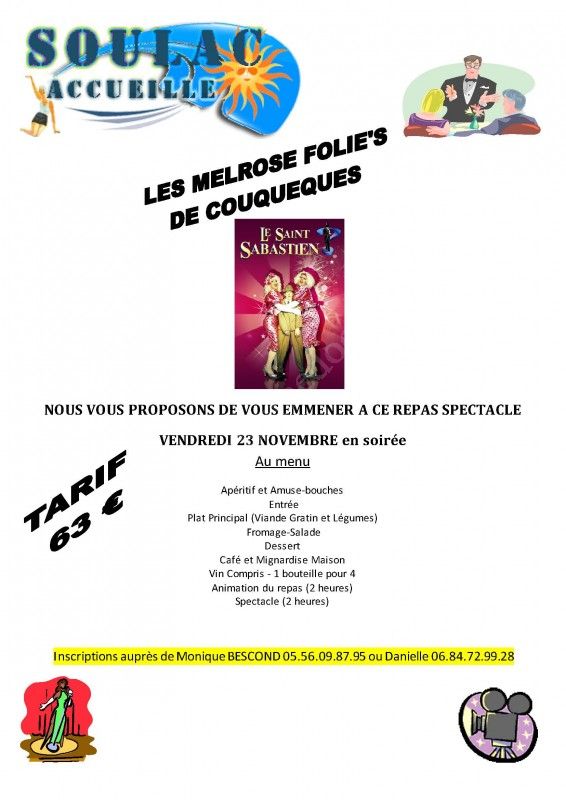 Soulac Accueille vous propose de vous emmener au repas spectacle "Les Melrose Folie's de Couquèques" !