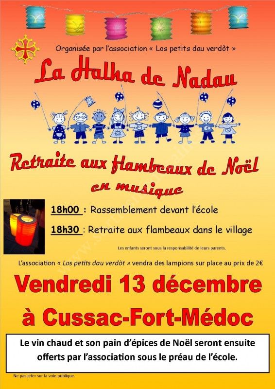 L'association "Los Petits dau Verdot" vous propose de les retrouver VENDREDI 13 DÉCEMBRE pour une retraite aux flambeaux de Noël "La Halha de Nadau".