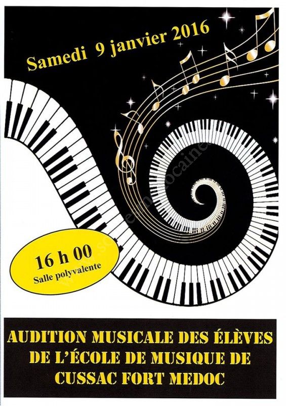 Vous êtes conviés à l'audition musicale des élèves de l'école de musique municipale de Cussac Fort Médoc, ce