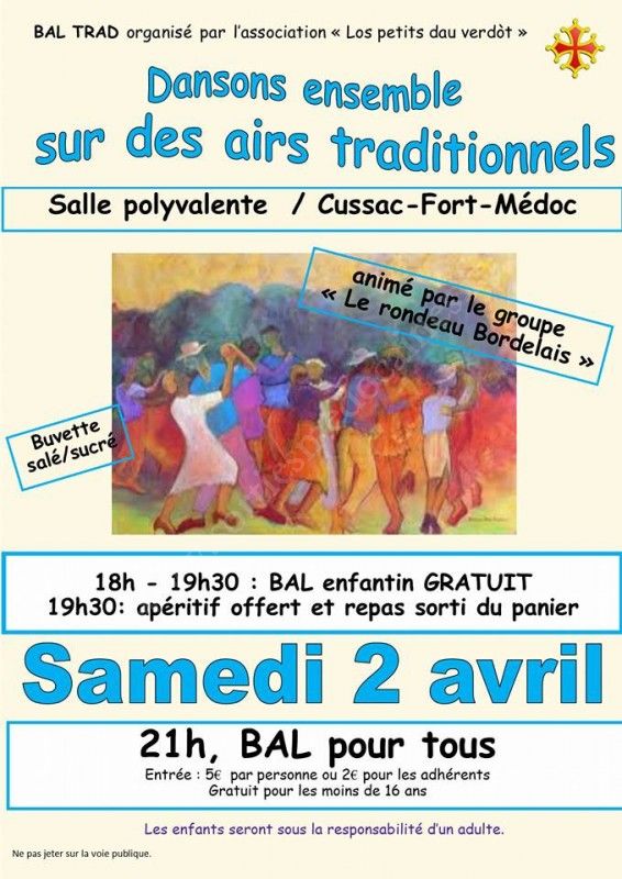 L'association Los Petits dau Verdot vous propose le samedi 2 avril à la salle des fêtes de Cussac Fort Médoc un Bal Trad, animé par le groupe "Le Rondeau Bordelais" :